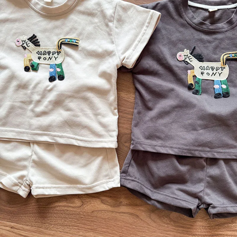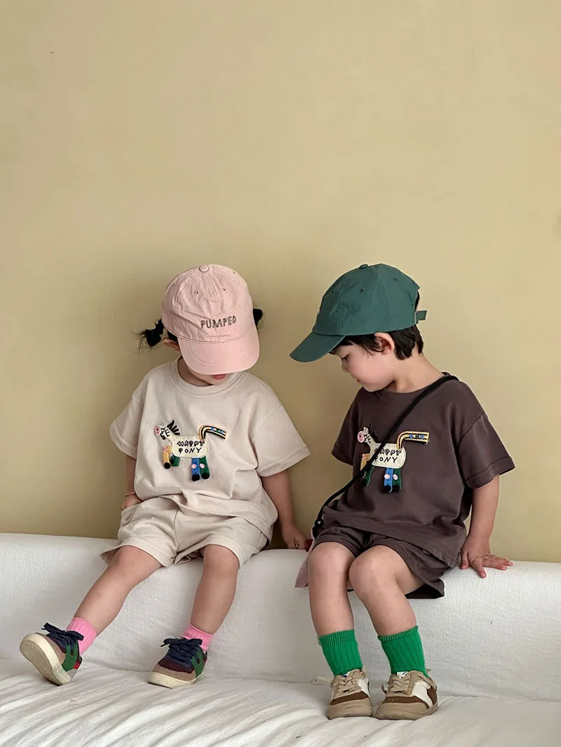 🌈 Gallop into Adventure: Cartoon Pony T-shirt + Shorts Outfit! 🦄✨